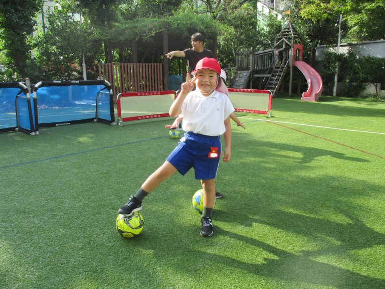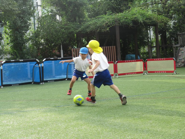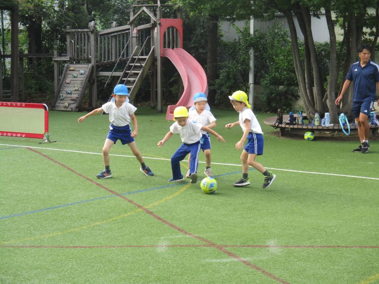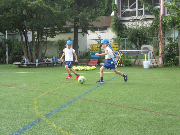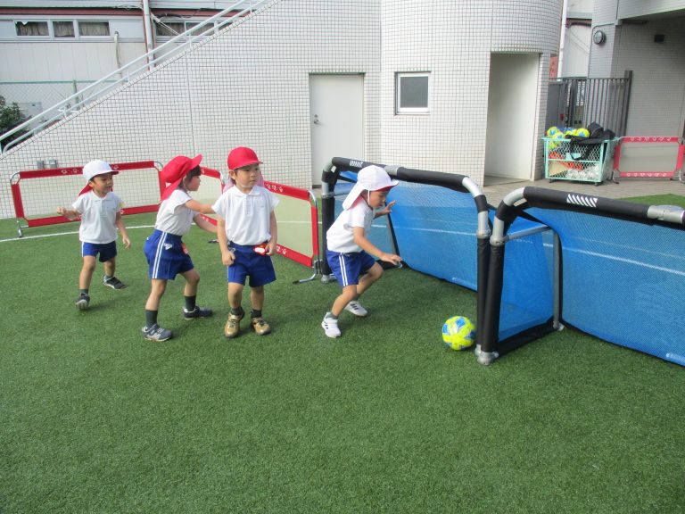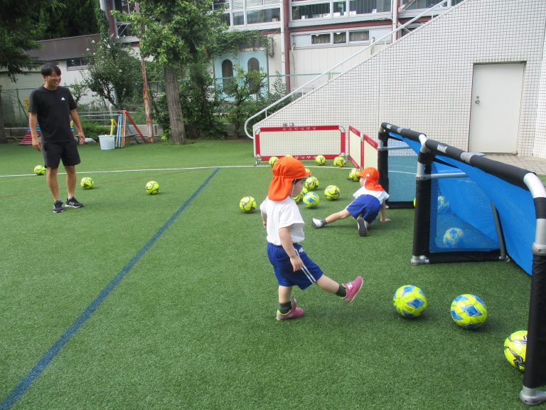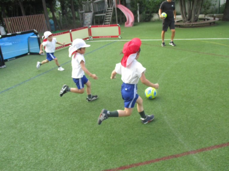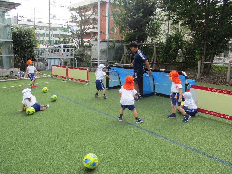 天候が秋らしくなり、外で過ごしやすくなったので、久しぶりにサッカーの教室を園庭で行いました!