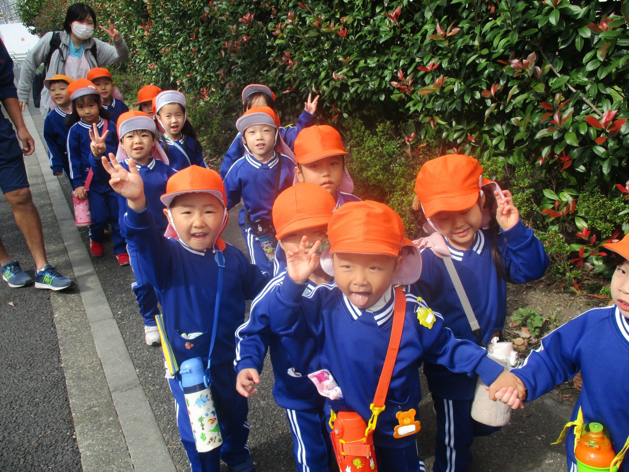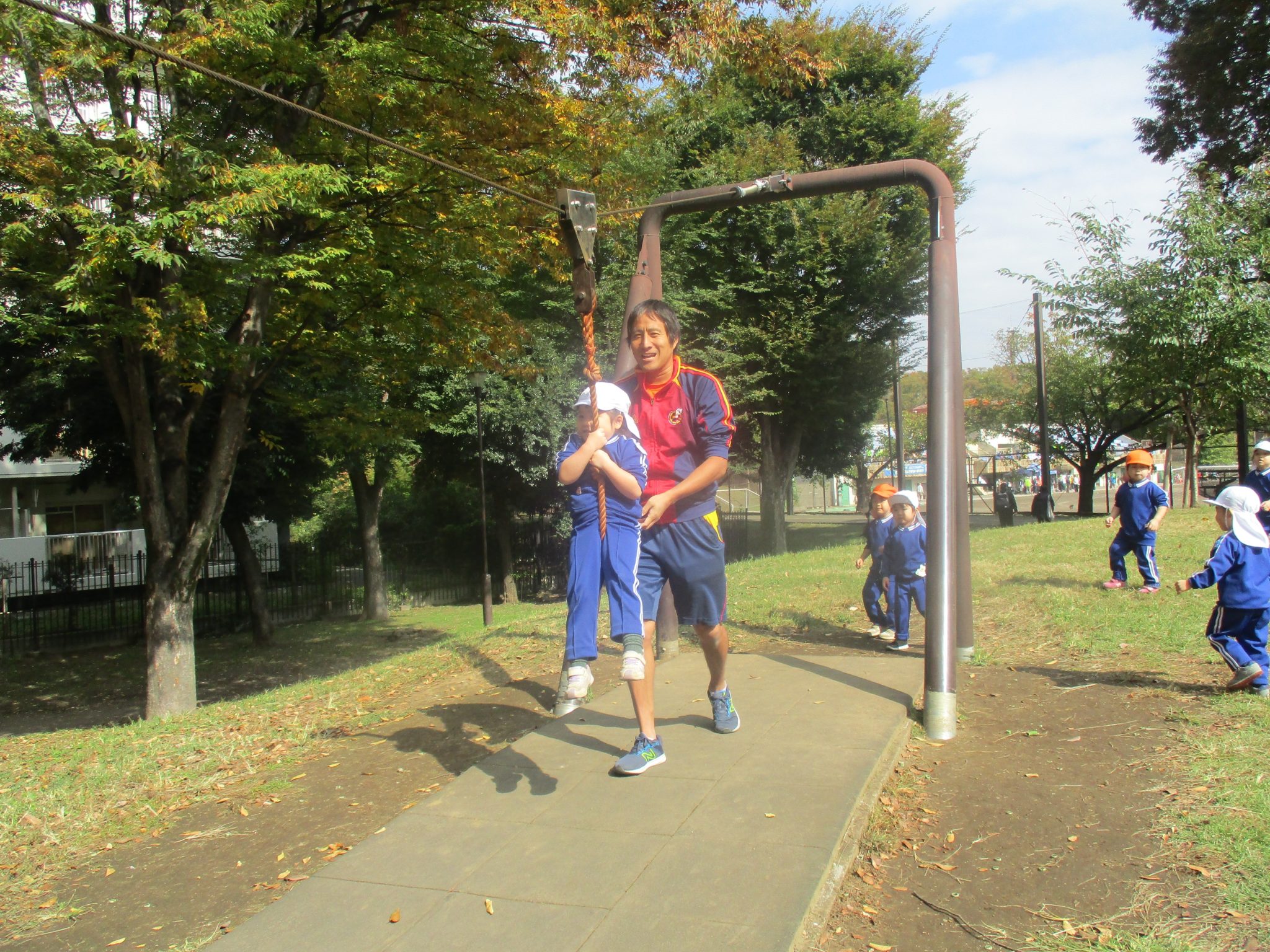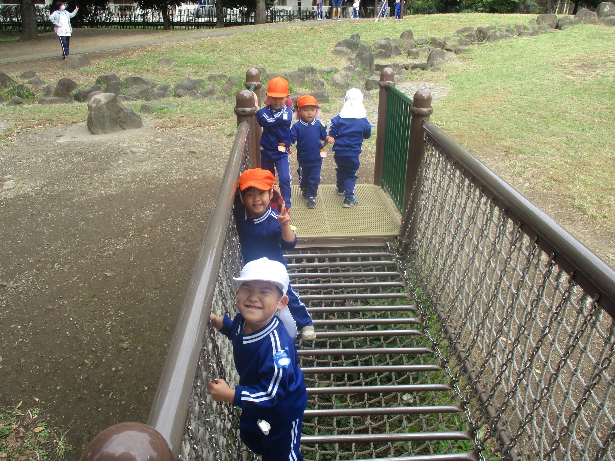 先日年少組が近所の公園へお散歩に行きました。初めてのお散歩でしたが交通ルールを守り行けました。しゅんすけ先生と少し体を動かした後色々な遊具で遊びました。とっても楽しかったようです!