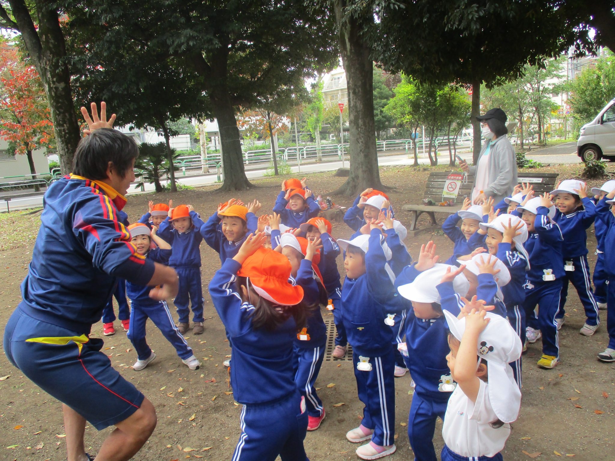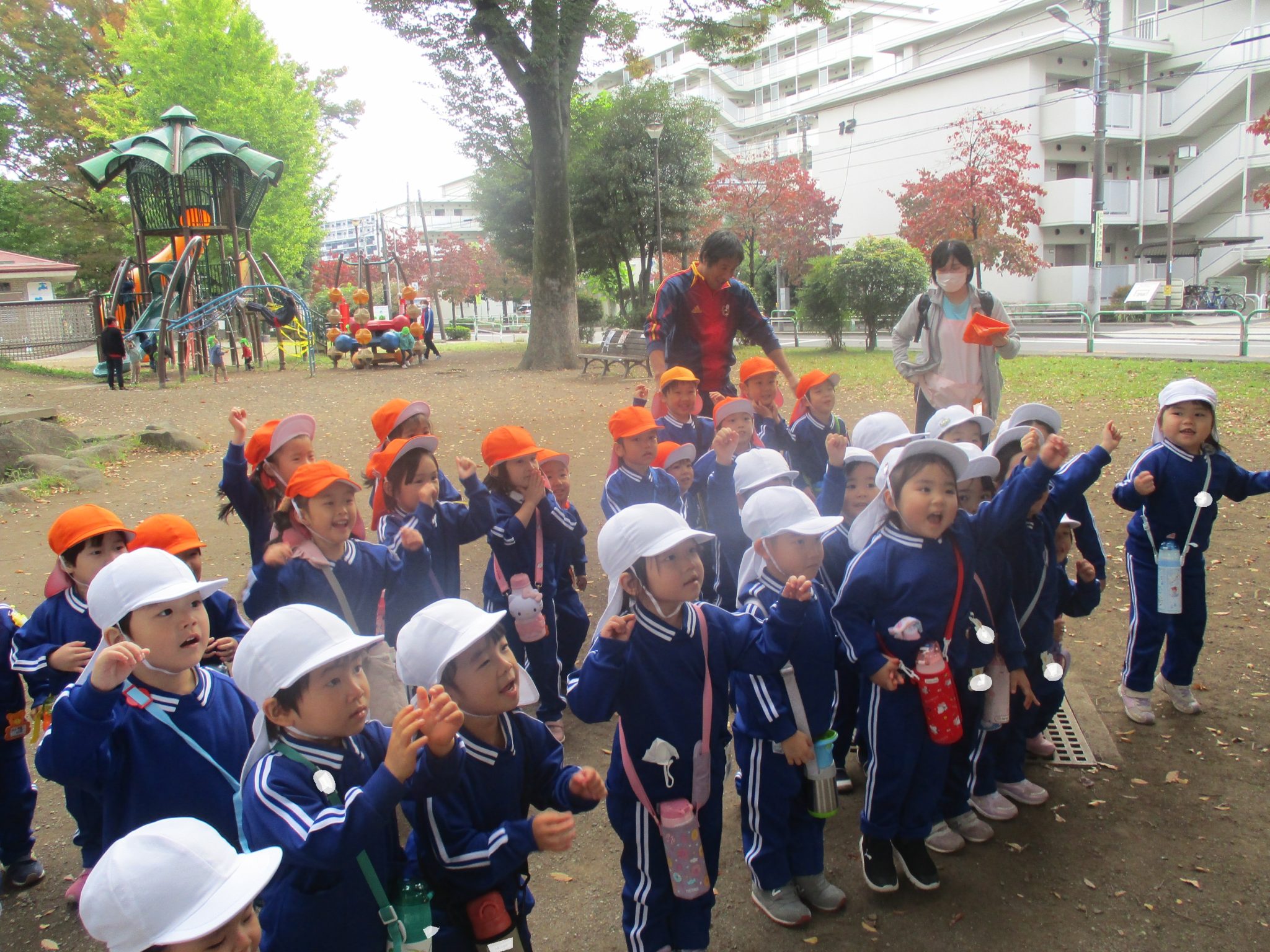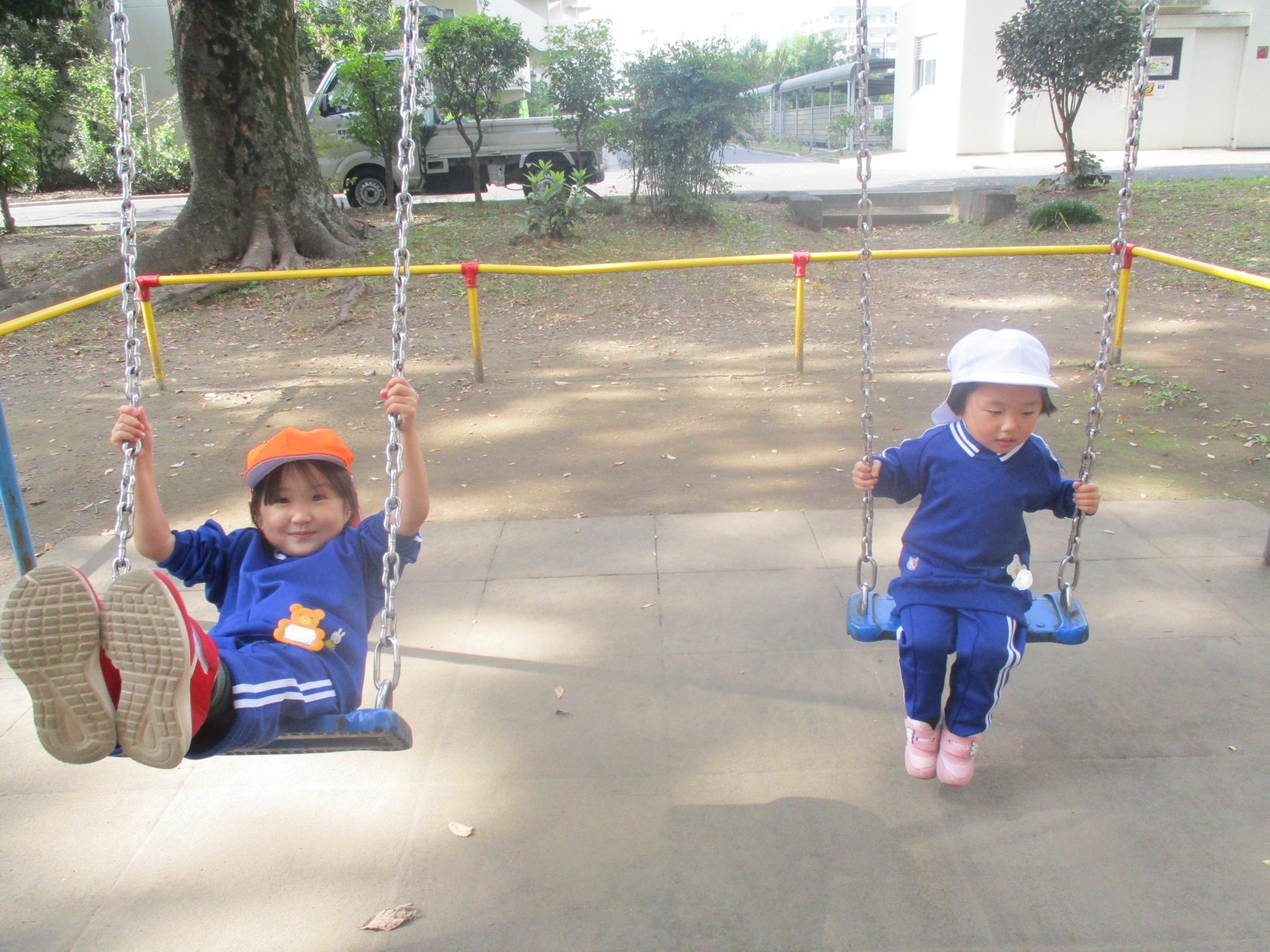 先日年少組が近所の公園へお散歩に行きました。初めてのお散歩でしたが交通ルールを守り行けました。しゅんすけ先生と少し体を動かした後色々な遊具で遊びました。とっても楽しかったようです!