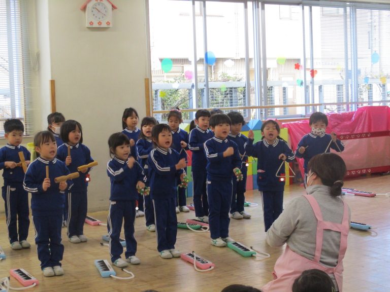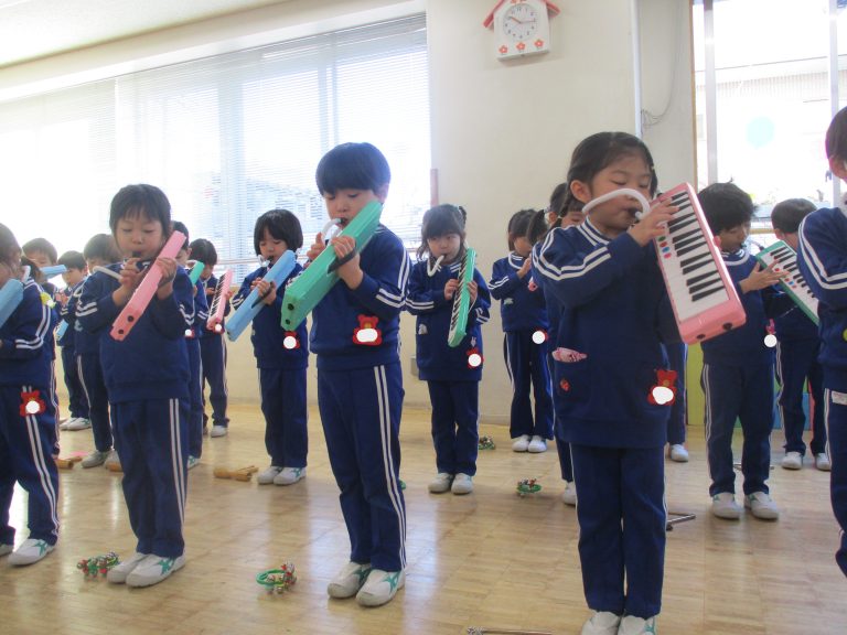 クリスマス会で行う合唱、合奏の発表会を幼稚園で行いました!