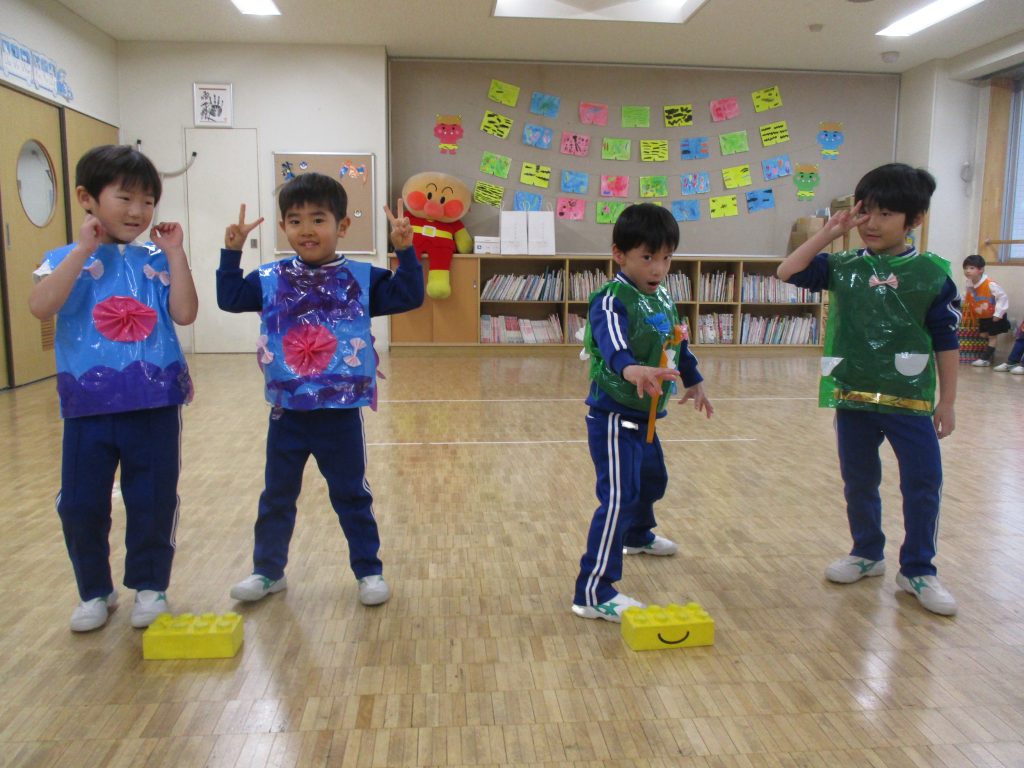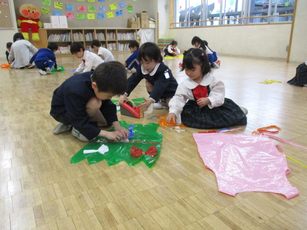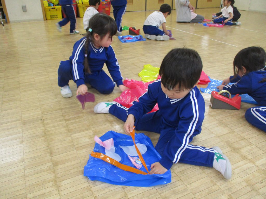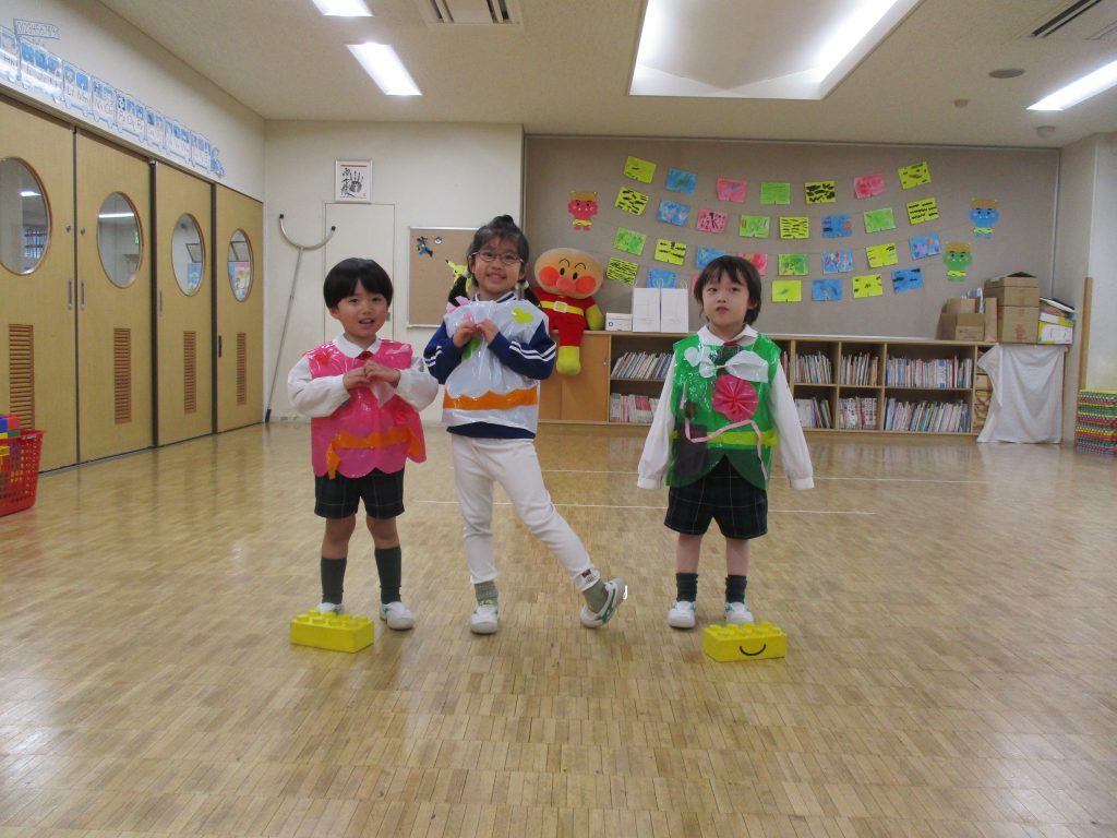 先日4時からの預かり保育カリキュラムでファッションショーを行いました。自分で生地を選び思い思いの装飾を施しました。最後はみんなの前で披露しました。