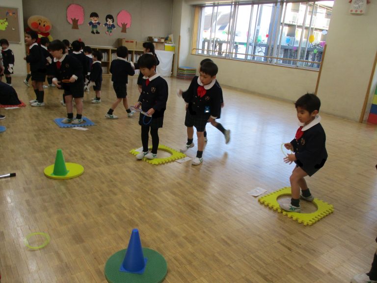 この日のカリキュラムは、「やってトライ!わなげゲーム」をしました。わなげが成功したらシールを貼れたりきらきらカードももらえて大喜びの子ども達でした。