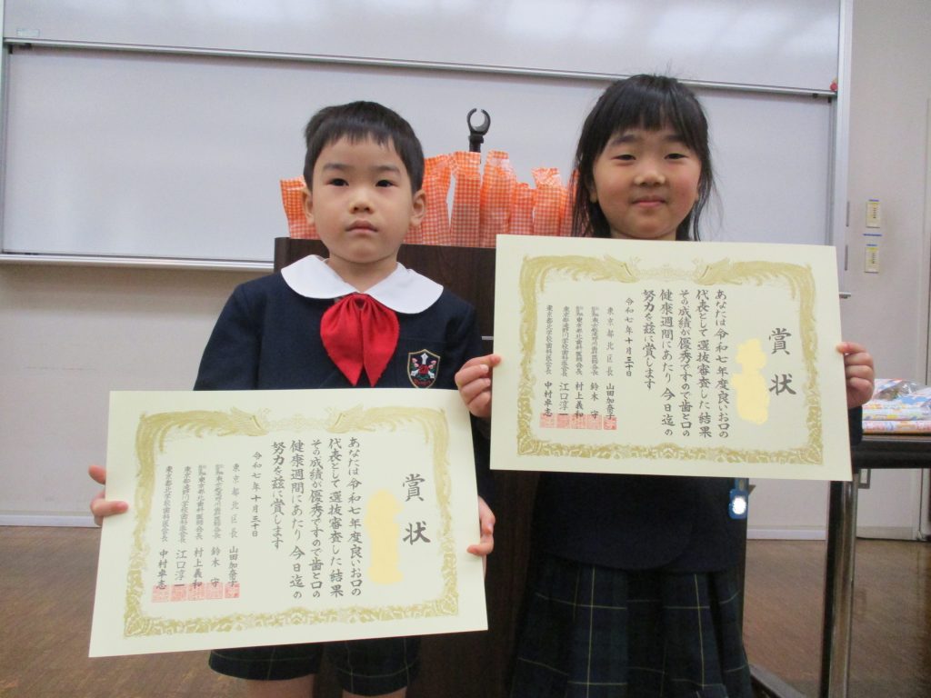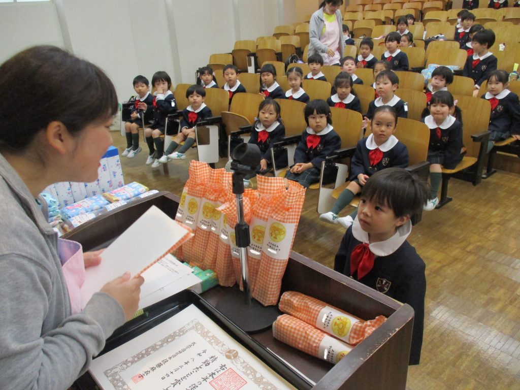 本日、修了式で、良いお口の代表の子や、精勤賞皆勤賞、各幼児教室の皆勤賞の表彰を行いました。