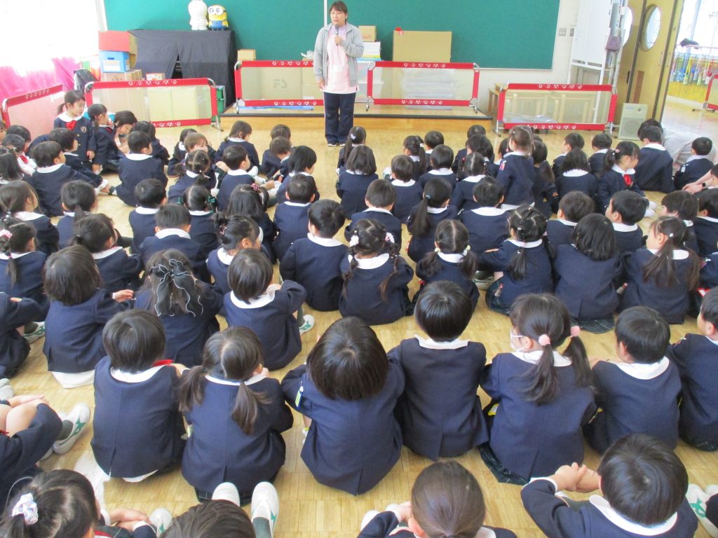 始業式をホールで行いました! 園長先生からのお話をきちんと座って聞くことができていました。 年少組は初めてのことが多くドキドキしていましたが、泣かずにクラスでの朝の会や帰りの会に 参加する姿が見られました! 明日からも元...