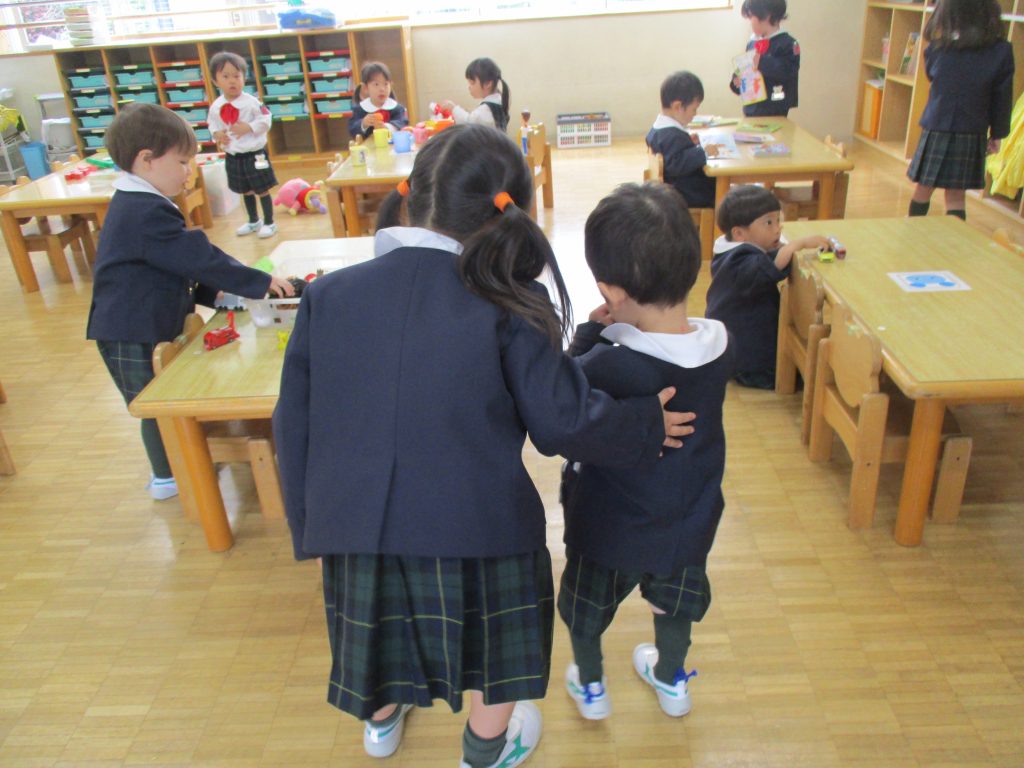 ※写真をクリックすると画像が大きくなって他の写真も見られるようになります。ぜひご覧ください! 先日年少組が園内を見て回りました。初めて部屋以外の所に行き年中・年長組の部屋ではお兄さんお姉さんが「一緒に遊ぼう...